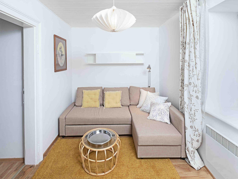 Gemütliches, kleines Wohnzimmer mit Schlafcouch & Digital-TV